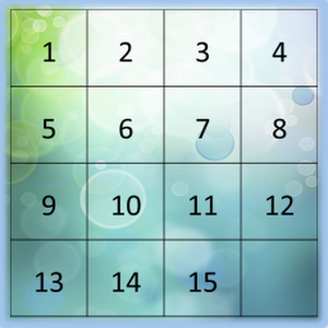 15 number puzzle. Arrange the numbers from 1 to 15 by clicking the number close to the blank cell.